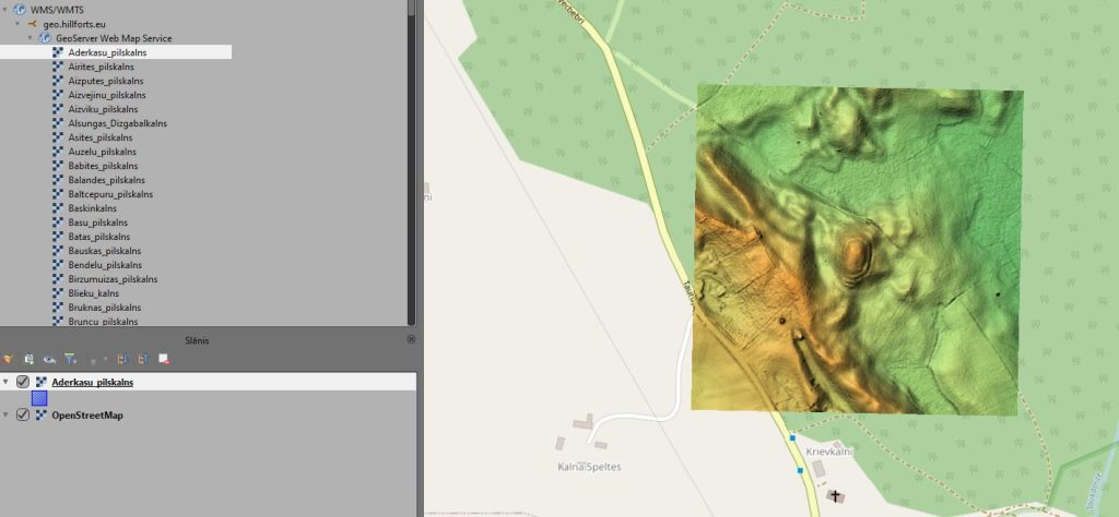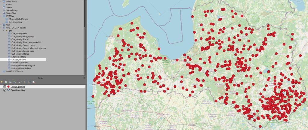 At the time of writing, the service contains coordinates and metadata of the Baltic hillforts, objects surveyed by the “Cult Identity” project, as well as georeferenced TIFF images of hillforts in some Latvian regions.